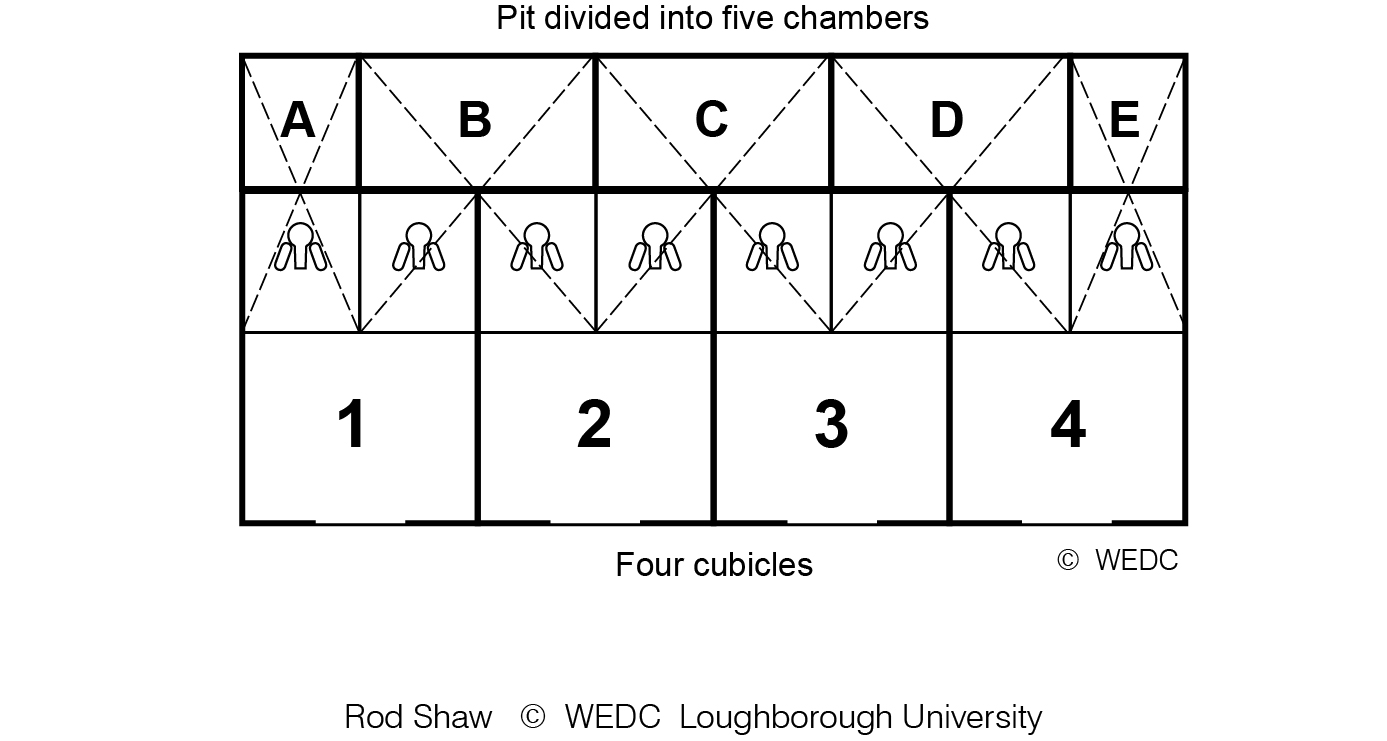 Pedestals | Pits and chambers | Pit latrine with sand envelope to reduce pollution | ||